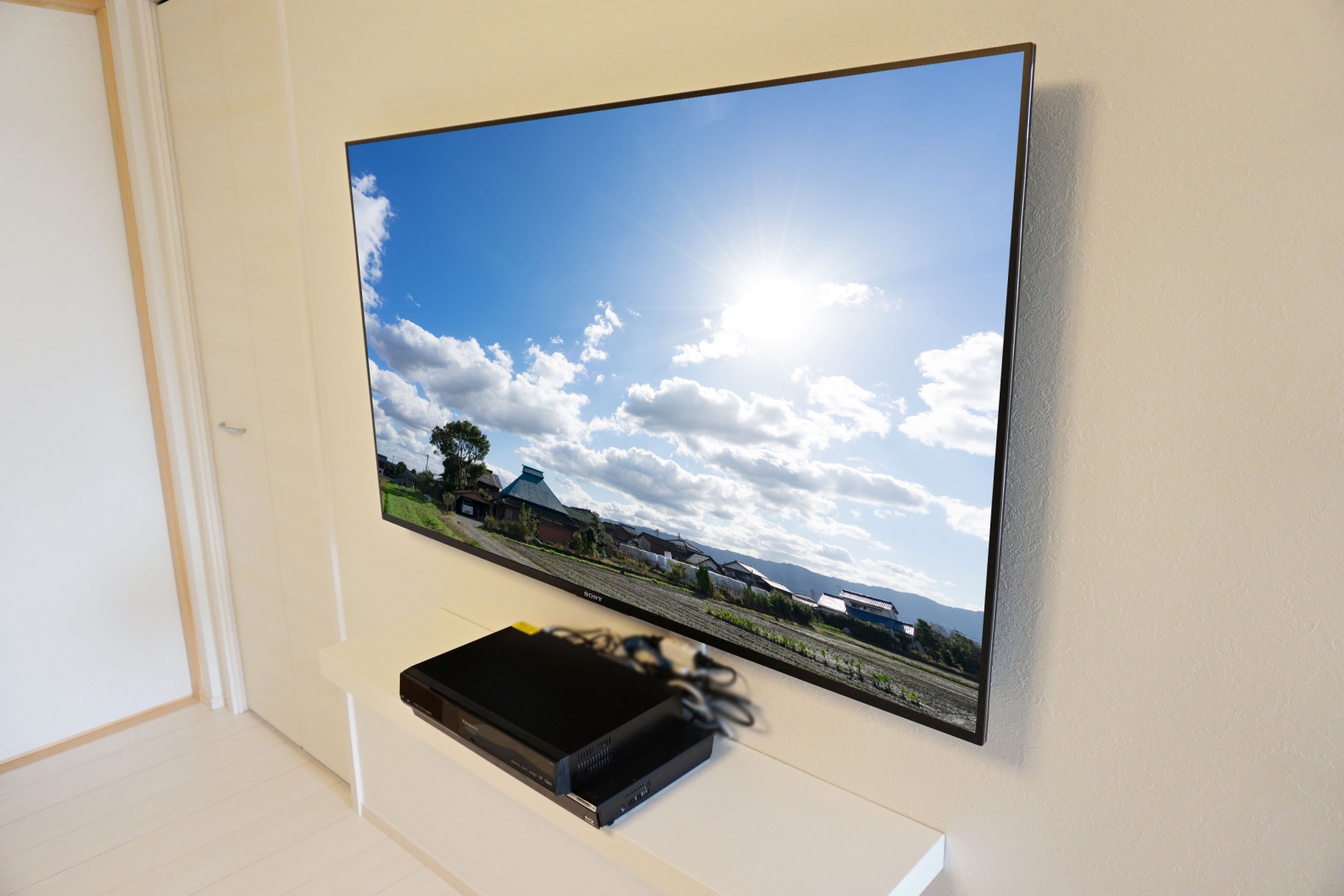 (↑)テレビを壁掛けにする事で、テレビ台設置では生じてしまいがちな接触による転倒を100%防止する事が可能になります。