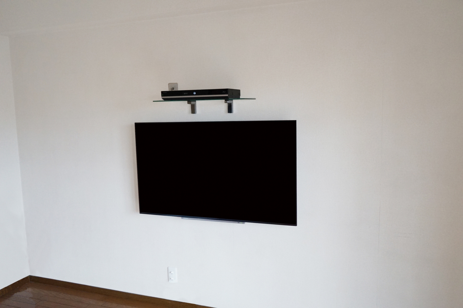 (↑)テレビ台は無くしたいけど、壁掛けテレビ後のブルーレイレコーダーやゲーム機の置き場所に困るという方は専用シェルフをご選択されています。